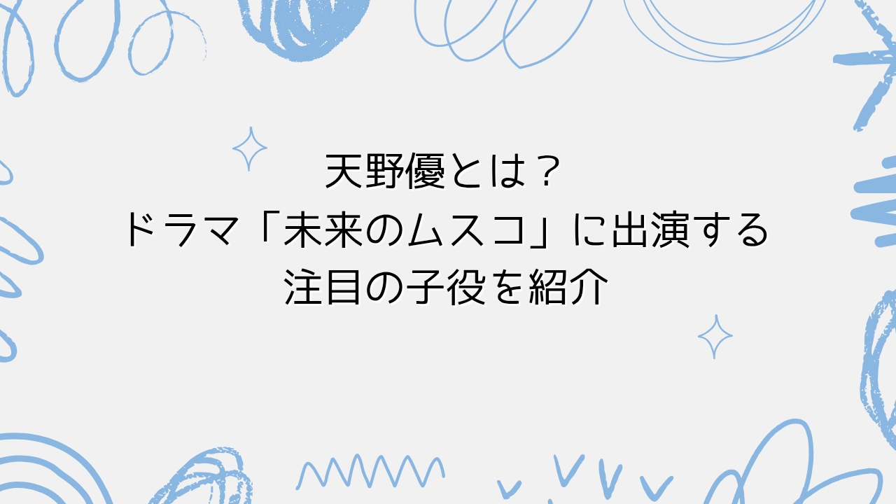 今回は、ドラマ「未来のムスコ」に出演する子役・天野優くんについて、プロフィールやこれまでの出演作品、役どころなどを中心に紹介しました。