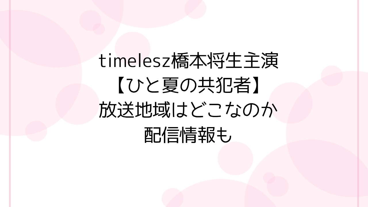 今回はtimeleszのメンバー橋本将生さんが初主演を務めるドラマ【ひと夏の共犯者】の放送地域について調べてみました。