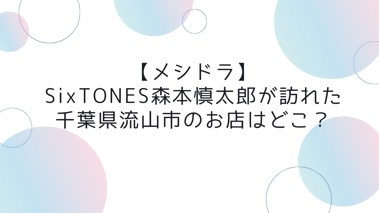 【メシドラ】SixTONES森本慎太郎が訪れた千葉県流山市のお店はどこ?