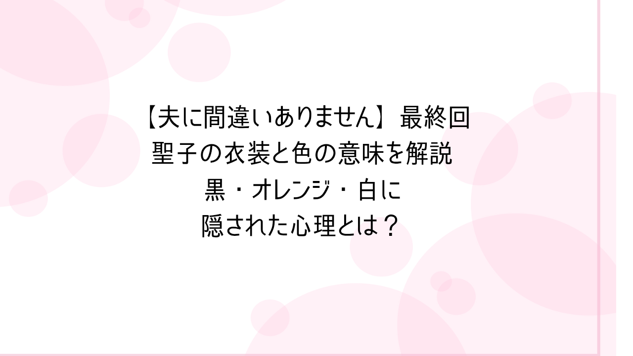 今回は、衣装と色彩心理の視点から、最終回で描かれた聖子の心の動きを紐解いていきます。