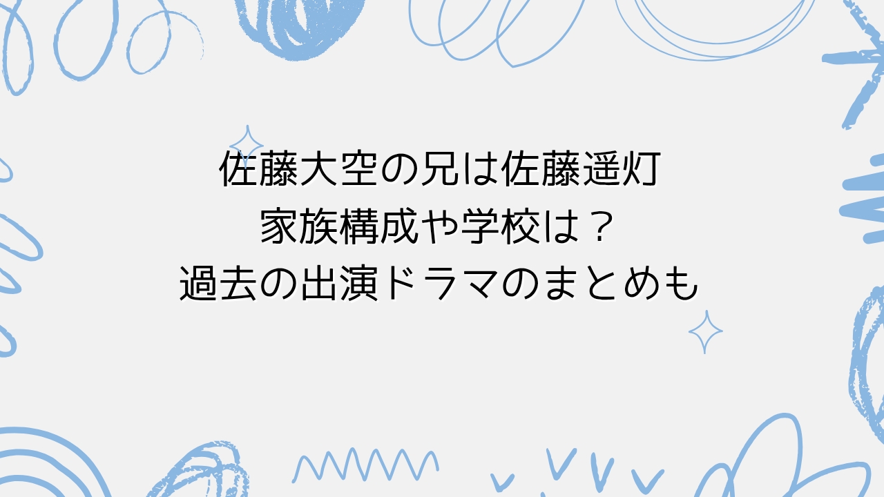 そんな佐藤大空くんのお兄さんについて、家族構成や学校について紹介しました。