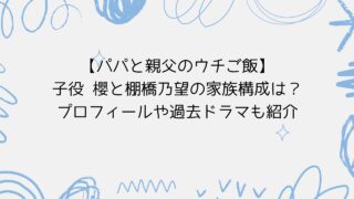 俳優 【パパと親父のウチご飯】子役 櫻と棚橋乃望 二人に兄弟はいる?過去の出演ドラマも紹介 こんにちは、sukokoです。テレビ朝日、オシドラサタデー枠(毎週土曜日よる11時から)で10月4日から放送されている【パパと親父のウチご飯】白洲迅さんとtimeleszの松島聡さんのW主演です。二人ともシングルファーザーで子育てに悪戦苦闘... 2025.10.09 俳優
