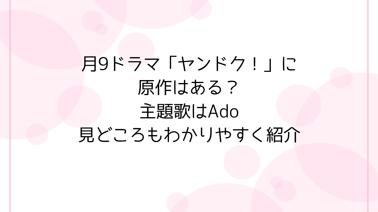 月9ドラマ「ヤンドク!」に原作はある?主題歌はAdo 見どころもわかりやすく紹介