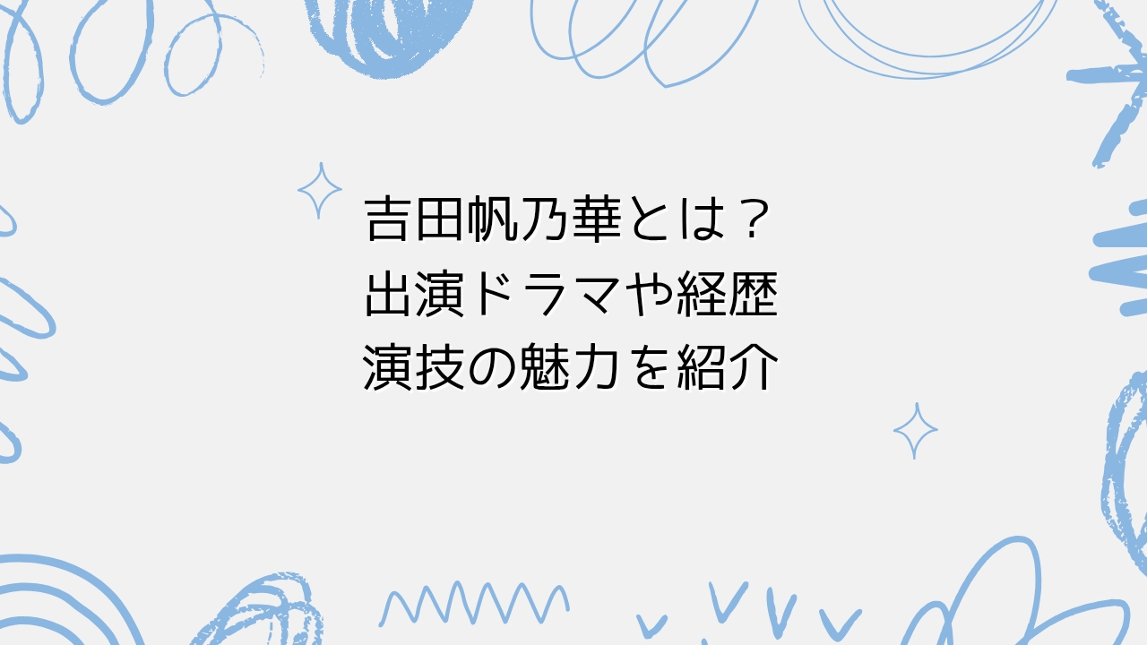 本記事では、吉田帆乃華さんについて、出演作品や経歴、演技の特徴など、公表されている情報を基に紹介します。